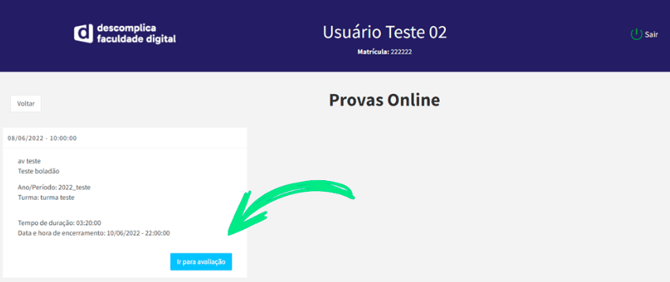 - Após iniciado, é necessário finalizá-lo dentro do período disponível.